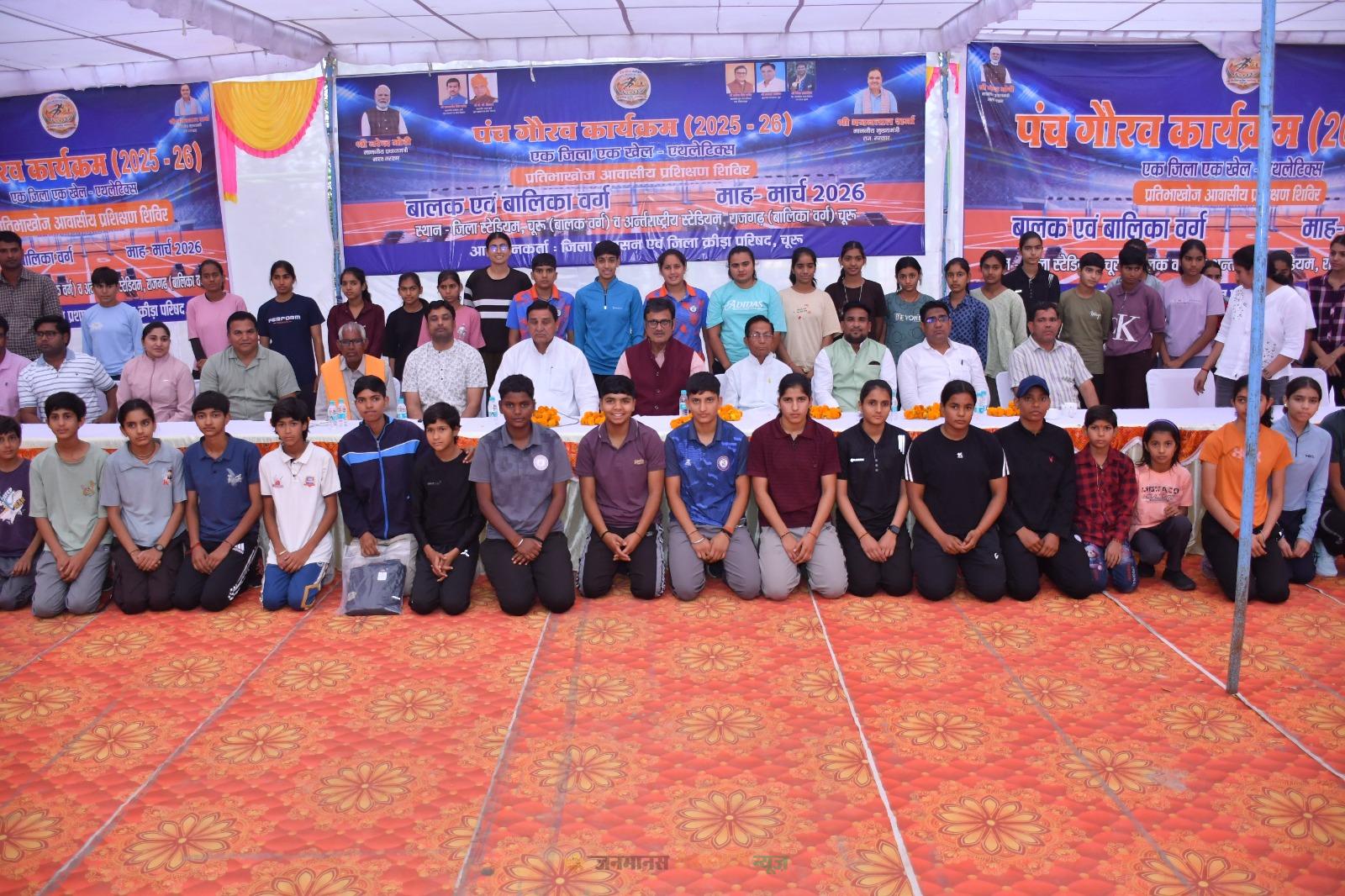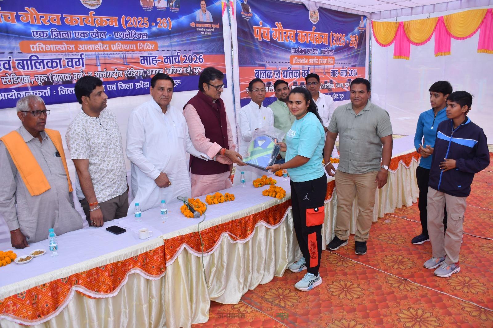 चूरू : पंच गौरव कार्यक्रम के अंतर्गत “एक जिला – एक खेल : एथलेटिक्स” योजना के तहत जिला खेल स्टेडियम में आयोजित आवासीय प्रशिक्षण शिविर का समापन समारोह उत्साहपूर्ण वातावरण में सम्पन्न हुआ। कार्यक्रम में पूर्व नेता प्रतिपक्ष राजेंद्र सिंह राठौड़, चूरू विधायक हरलाल सहारण सहित जनप्रतिनिधियों ने शिरकत कर खिलाड़ियों का उत्साहवर्धन किया।