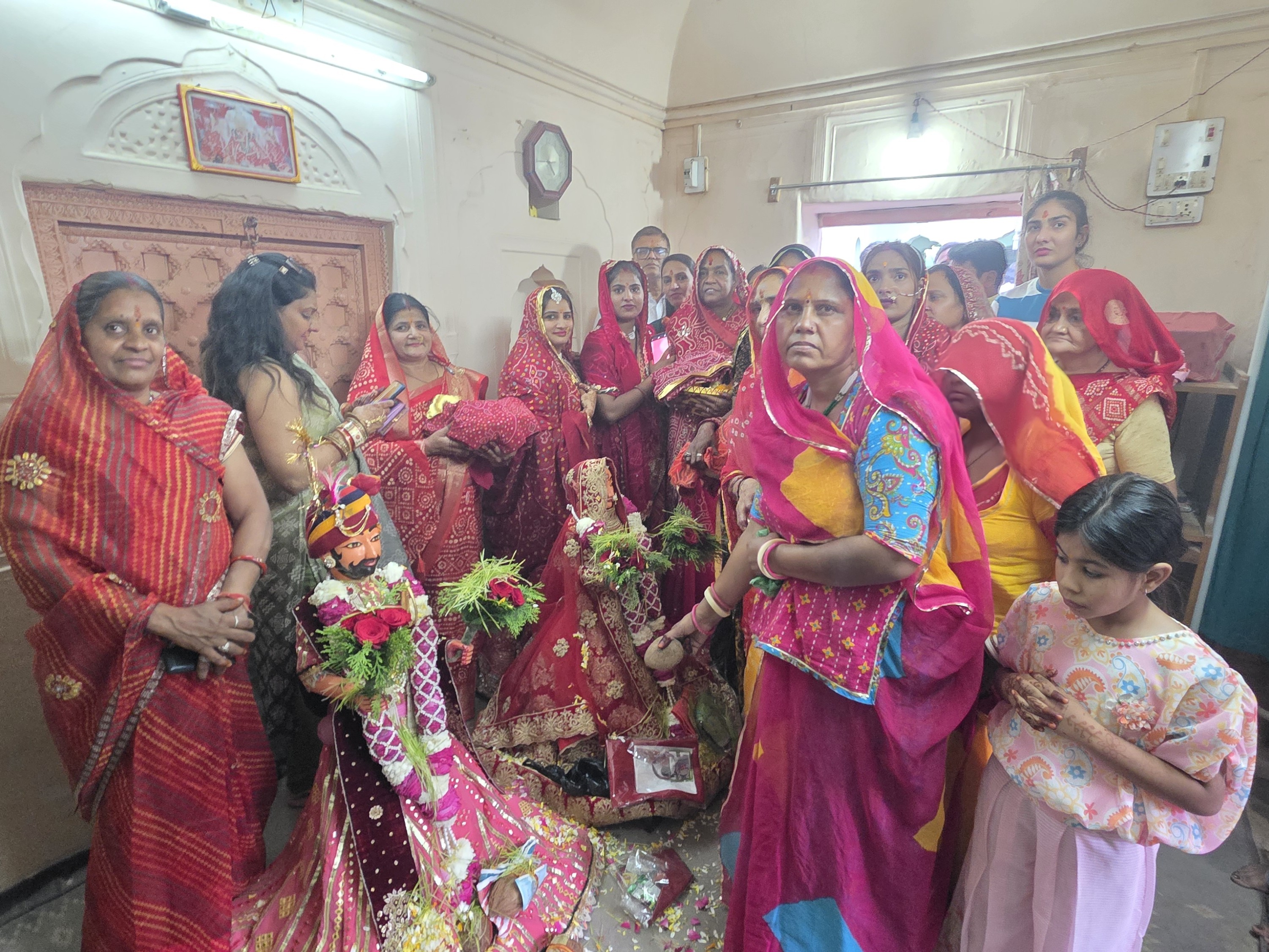 शोभायात्रा के दौरान मुख्य चौक-चौराहों व सार्वजनिक स्थलों पर बनाए गए पूजा स्थलों पर श्रद्धालुओं ने ईसर-गणगौर की पूजा-अर्चना की। रंग-बिरंगे परिधानों में सजी-धजी महिलाओं, नवविवाहिताओं और युवतियों ने जगह-जगह पूजा कर अखंड सौभाग्य की कामना की।
