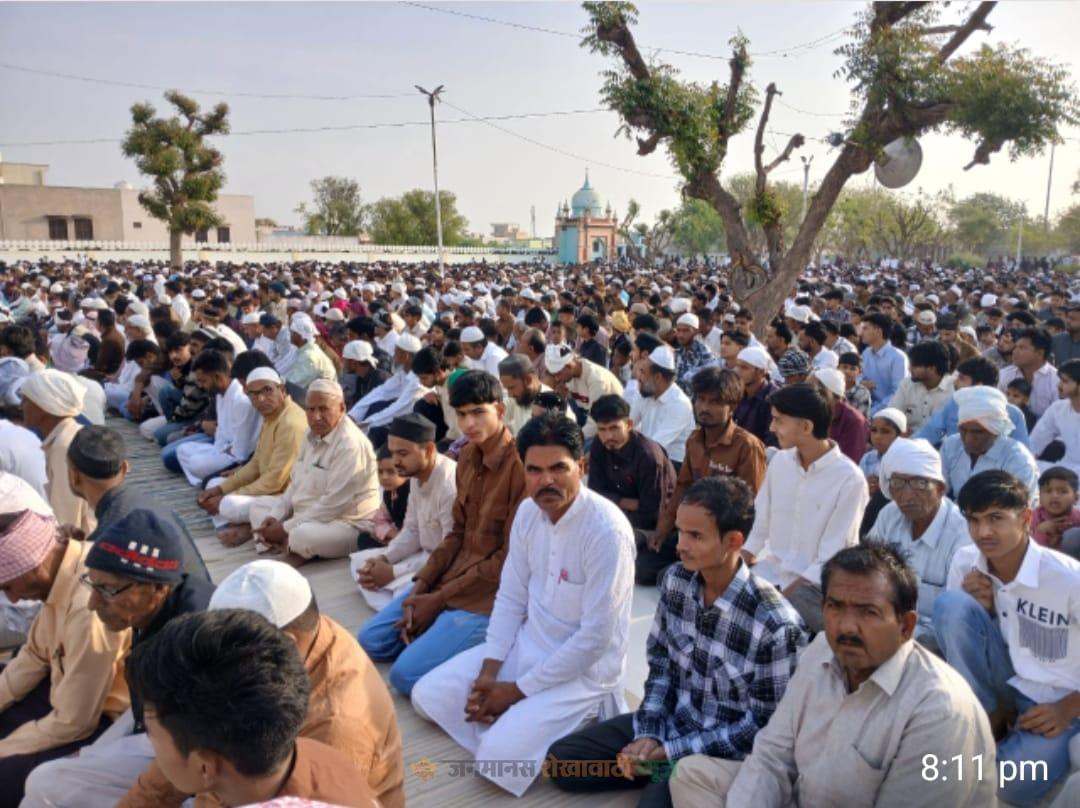 शाही ईदगाह मस्जिद बड़ाबास व सुनारी रोड़ स्थित नई ईदगाह मस्जिद व मदीना स्टेडीयम शहरिया बास आदी महत्वपूर्ण स्थानो पर सैकड़ों की तादाद में मुस्लिम समुदाय के लोगों के अलावा बडी संख्या में महिलाएं, बच्चे आदी इकट्ठा हुए और सबने मिलकर ईद की नमाज अदा की। सभी लोगों ने ईद उल फितर की नमाज अदा करने के बाद एक-दूसरे से गले लगाकर ईद की मुबारकबाद देते हुए अपनी खुशी का इजहार किया, नमाज के बाद मुस्लिम समुदाय के लोगों ने अल्लाह का शुक्र अदा करते हुए क्षेत्र सहित देश और प्रदेश में अमन-चैन बनाए रखने और आपसी भाईचारे कायम रखने की दुआएं मांगी।