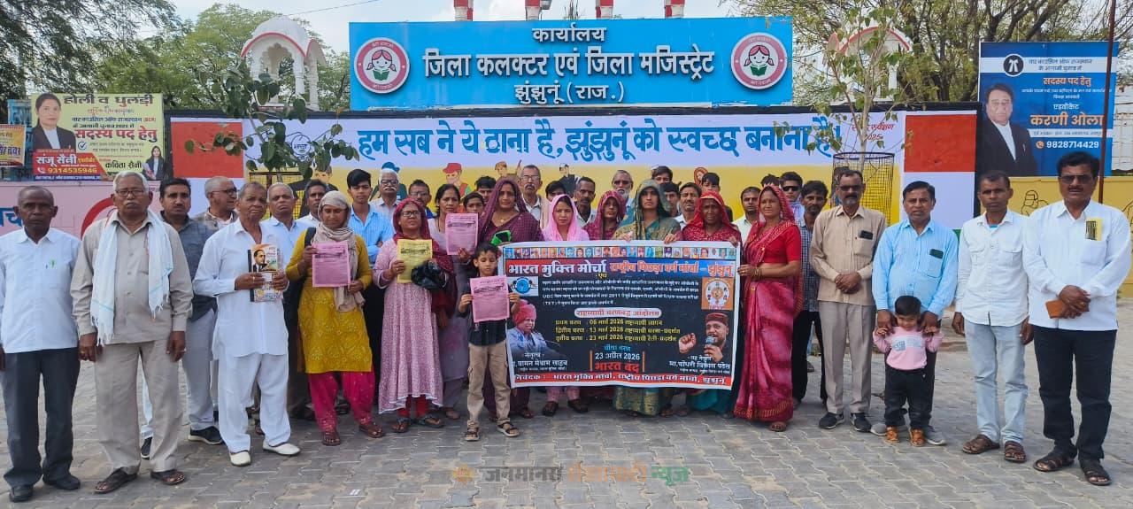 भारत मुक्ति मोर्चा व राष्ट्रीय पिछड़ा वर्ग मोर्चा ने झुंझुनूं में निकाली रैली, कलेक्टर को सौंपा ज्ञापन