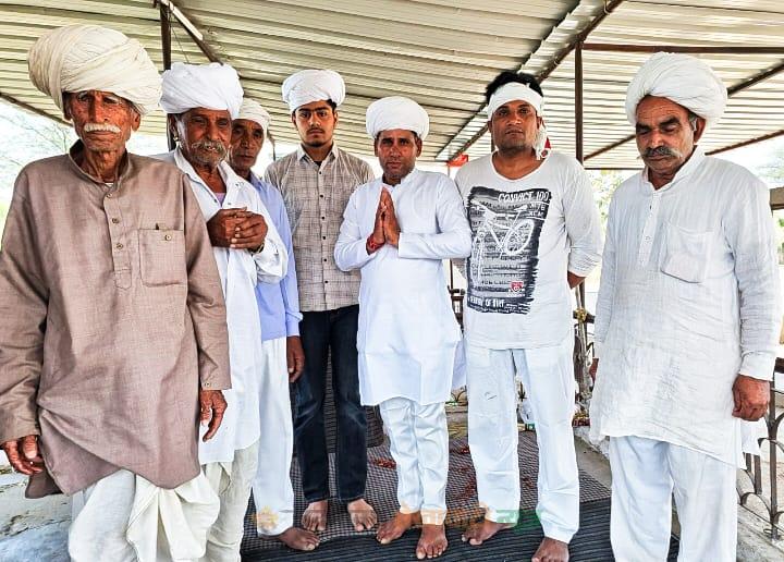 गुढ़ागौड़जी : निकटवर्ती केशरीपुरा हीरामल देव महाराज मंदिर पर सोमवार को पंचमी के शुभ अवसर पर नए भगत तन्मय बुडानिया को देव महाराज का नया भक्त बनने पर शपथ दिलाई गई। इस मौके पर देव महाराज के गुलाब गुर्जर गुरु, भगत ताराचंद गुर्जर, देवसेना के प्रदेश सचिव धर्मपाल गुर्जर केसरीपुरा, भगत बीरबल गुर्जर, भगत सहीराम गुर्जर, भगत चंदगी राम सैनी, नवीन, भगत आदित्य, भगत पीयूष व भगत राजेश बुडानिया आदि सभी भक्तों ने नए भगत से गले मिलकर आभार जताया। देव महाराज के गुरु गुलाबचंद गुर्जर ने कहा कि देव महाराज का भक्त बनने के बाद शराब का जिंदगी भर इस्तेमाल नहीं होता, मांस मदिरा का सहित हर चौथ और पंचमी को साबुन व तेल आदि सभी का इस्तेमाल नहीं हो सकता। भगत तन्मय को देव महाराज का ताज पहनाकर तथा हाथ पर बंधन बांधकर व गौ माता को साक्षी मानकर गोमूत्र से हाथ धुलाकर शपथ दिलाई गई। देव महाराज का 11 बार उच्चारण करवाया गया उसके बाद भगत की उपाधि दी गई। सभी भक्तों ने कहा कि इस उम्र में देव महाराज की शरण में आने से इनके परिवार में अब कोई संकट तथा कठिनाईयां नहीं आएगी।
