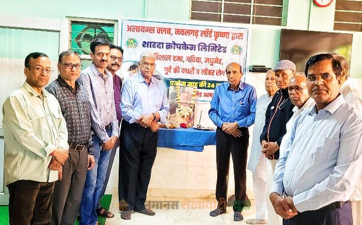 नवलगढ़ : भारतीय सेवा समाज के संस्थापक स्वामी कृष्णानंदजी महाराज की प्रेरणा से शारदा क्रोपकेम बंबई के आर्थिक सौजन्य से, सामाजिक विकास हेरिटेज एण्ड वाइल्ड लाइफ कंजर्वेशन फाउण्डेशन, अलायंस क्लब नवलगढ़ लार्ड कृष्णा व श्री रामकृष्ण जयदयाल डालमिया सेवा संस्थान चिड़ावा के सहयोग से 24 मार्च को जांगिड़ अस्पताल नवलगढ़ में 140 वां निःशुल्क दमा, गठिया, मधुमेह रोगों के आयुर्वेदिक शिविर का आयोजन किया गया। कार्यक्रम का उदघाटन शिक्षाविद् मेजर डीपी शर्मा ने किया।