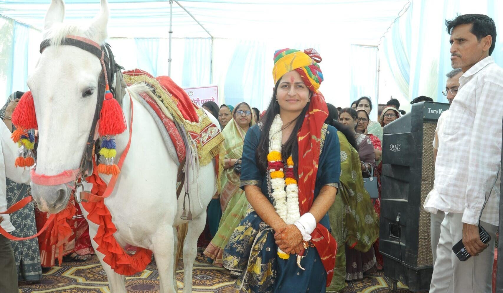आमतौर पर विवाह में दूल्हा घोड़ी पर सवार होकर बिंदोरी निकालता है, लेकिन इस पहल के तहत अल्का पूनियां जो स्वयं विभाग में सुपरवाइजर पद पर कार्यरत हैं को घोड़ी पर बैठाकर यह संदेश दिया गया कि बेटियां भी सम्मान और समानता की पूरी हकदार हैं।