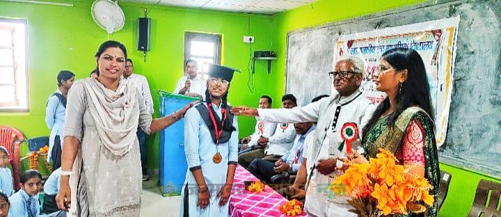मंड्रेला : क़स्बे के पिलानी रोड़ स्थित लाठ राजकीय उच्च माध्यमिक विद्यालय में विद्यार्थी सम्मान समारोह एवं मेगा पीटीएम का भव्य आयोजन किया गया। कार्यक्रम में विद्यालय के विद्यार्थियों, अभिभावकों एवं गणमान्य नागरिकों की उत्साहपूर्ण भागीदारी देखने को मिली।कार्यक्रम के दौरान प्रत्येक कक्षा में प्रथम, द्वितीय एवं तृतीय स्थान प्राप्त करने वाले विद्यार्थियों को मेंडल, प्रशस्ति पत्र एवं उपहार प्रदान कर भामाशाहों द्वारा सम्मानित किया गया। इस पहल से विद्यार्थियों में प्रतिस्पर्धा की भावना के साथ-साथ शिक्षा के प्रति उत्साह भी बढ़ा। प्रधानाचार्या पिंकी कुमारी ने कार्यक्रम में उपस्थित सभी अतिथियों एवं अभिभावकों का आभार व्यक्त करते हुए कहा कि अभिभावकों और विद्यालय के समन्वय से ही विद्यार्थियों का सर्वांगीण विकास संभव है।