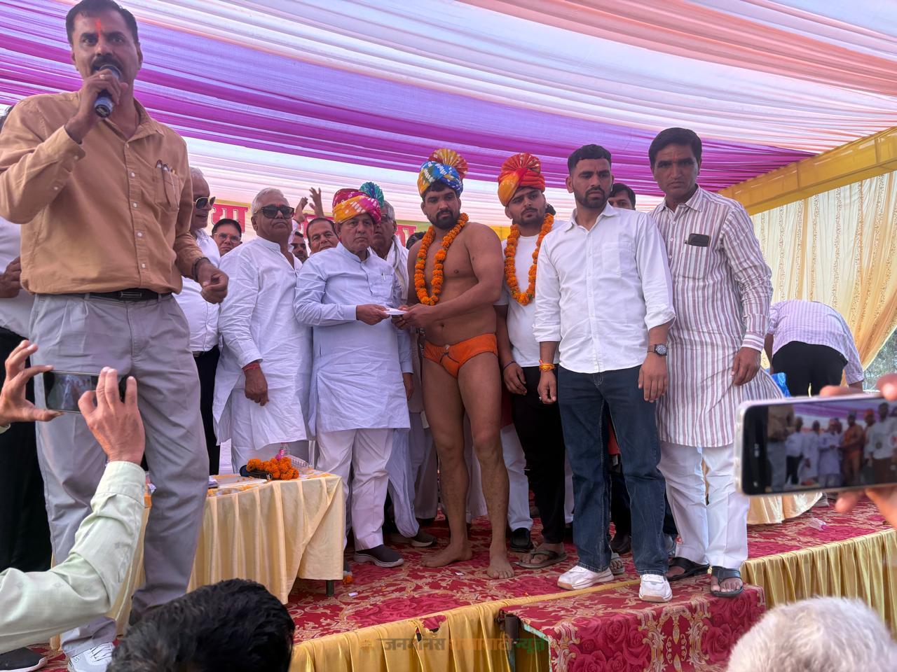 जोड़िया गांव में बालाजी मेले पर भव्य कुश्ती दंगल, विधायक भाम्बू ने किया पहलवानों का सम्मान