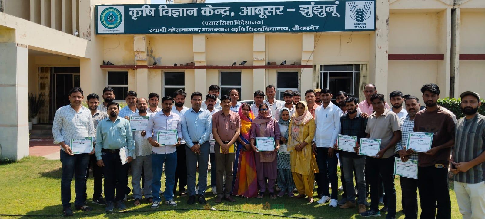 केवीके आबूसर में 15 दिवसीय प्रशिक्षण संपन्न, उर्वरक विक्रेताओं को दिए प्रमाण पत्र