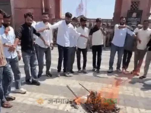 शेखावाटी यूनिवर्सिटी में छात्रों-सुरक्षाकर्मियों में धक्कामुक्की:शैलेंद्रनाथ महाराज को मानद उपाधि देने को लेकर विरोध, VC का पुतला फूंका, कल दीक्षांत समारोह