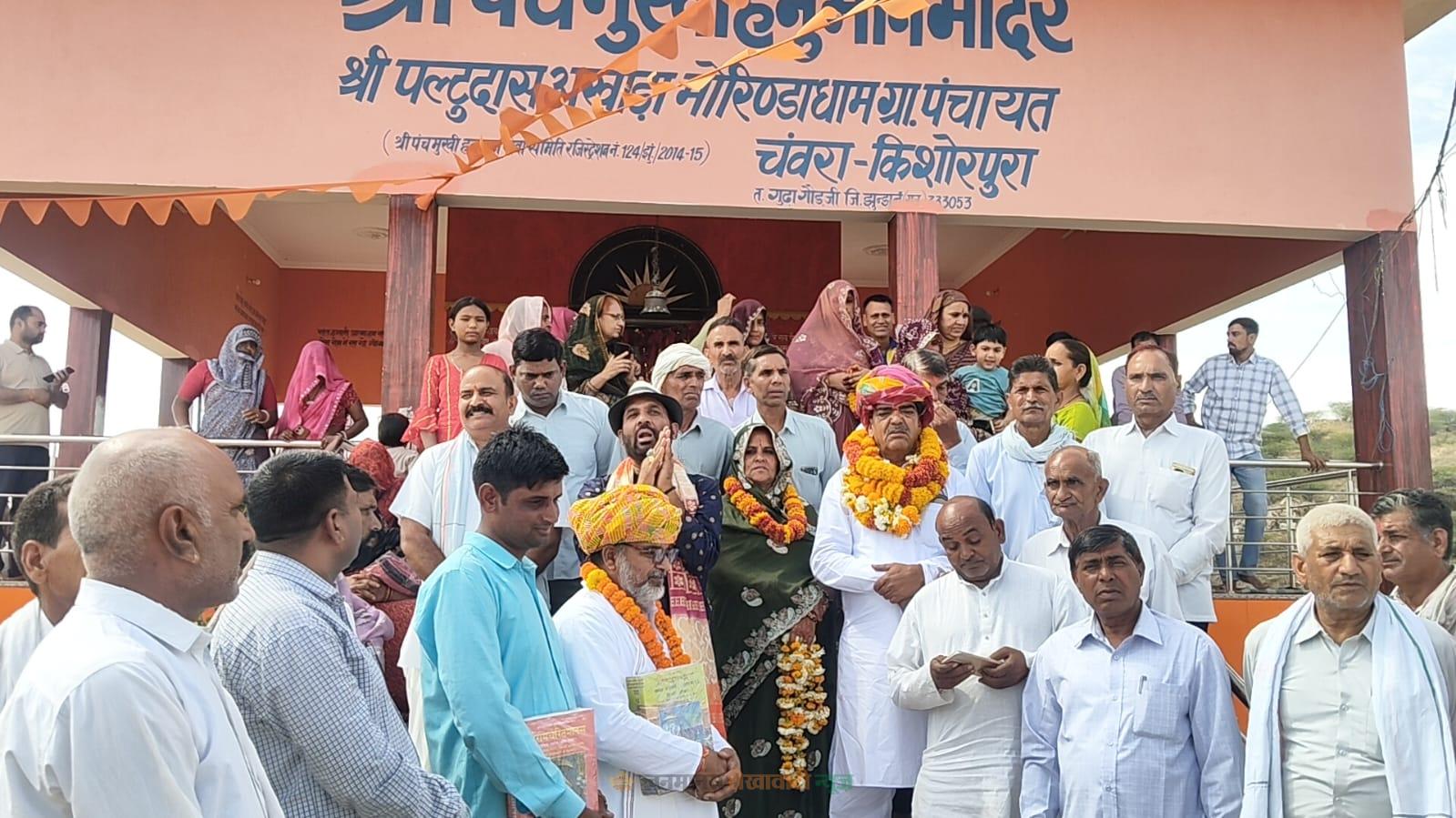 चंवरा : पलटूदास अखाड़े के श्री पंचमुखी बालाजी मंदिर पर मंगलवार को भू अभिलेख निरीक्षक पं. जगदीश प्रसाद शर्मा का सेवानिवृत्ति समारोह धूम धाम से मनाया गया। प जगदीश प्रसाद शर्मा अपनी राजकीय सेवा पूर्ण कर 31 मार्च को रिटायर्ड हुए है। इस उपलक्ष में उन्होंने अपने निज निवास पर स्नेह भोज का आयोजन रखा जिसमें आस पास के प्रमुख लोगों एवं बड़ी संख्या में ग्रामीण शामिल हुए है। प शर्मा ने सुबह पंचमुखी बालाजी महाराज के पूजा अर्चना कर ब्रह्मलीन संत बनवारी दास एवं पलटूदास महाराज की समाधियों को धोक लगाकर आशीर्वाद लिया। प शर्मा को खुली गाड़ी मे मंगल यात्रा के लवाजमे के साथ चौफूल्या किशोरपुरा से भैंरूनगर तक सम्मान के साथ लाया गया। इस दौरान उनका जगह जगह स्वागत सत्कार किया गया।