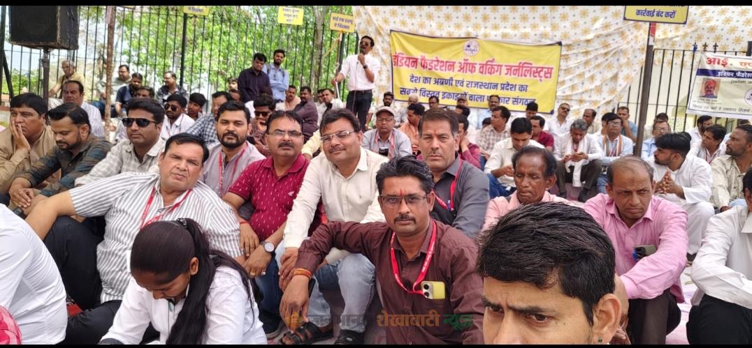 जयपुर/ चूरू : राजधानी जयपुर के शहीद स्मारक पर पत्रकारों का अनिश्चितकालीन धरना चौथे दिन भी पूरे जोर-शोर से जारी है। जयपुर से उठी यह चिंगारी अब लपट का रूप ले चुकी है और आंदोलन व्यापक जनआक्रोश में बदलता नजर आ रहा है। धरना स्थल पर ‘इंसाफ दो या जवाब दो’ के नारे लगातार गूंज रहे हैं।