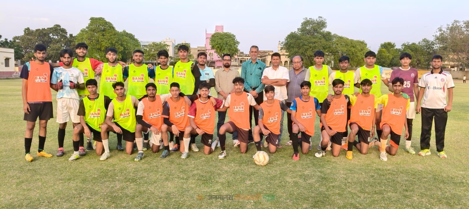नवलगढ़ : जिला फुटबॉल संघ झुंझुनूं द्वारा आयोजित जिला स्तरीय अंडर-20 (पुरुष वर्ग) फुटबॉल चैम्पियनशिप में चयनित खिलाड़ियों के लिए तीन दिवसीय प्रशिक्षण शिविर का शुभारम्भ किया गया। शिविर का उद्घाटन पूर्व संतोष ट्रॉफी खिलाड़ी अशोक गुर्जर उर्फ जोंटी ने किया।
