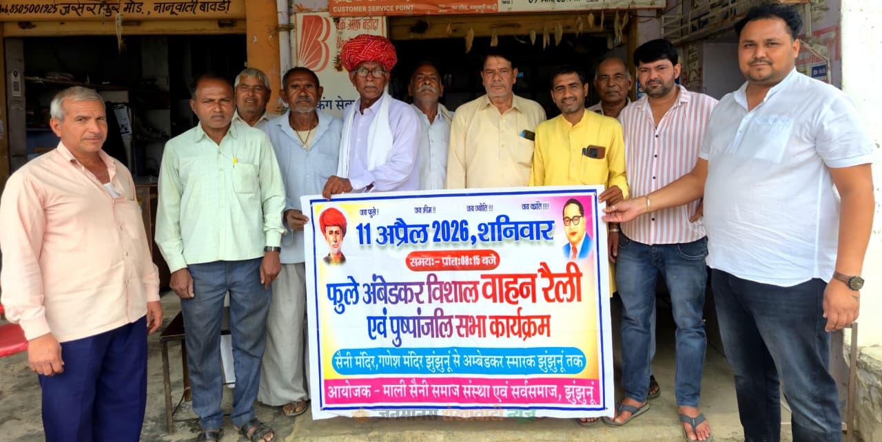 झुंझुनूं में फुले जयंती पर सर्व समाज की भव्य रैली 11 अप्रैल को: नानुवाली बावड़ी में किया पोस्टर का विमोचन, जनसंपर्क अभियान तेज
