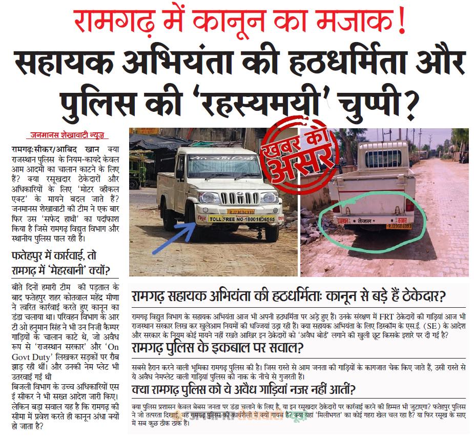 खबर के बाद जागा विभाग - क्या एस ई (SE) सीकर जिले में चल रहे अन्य वाहनों पर कोई ठोस कार्रवाई करेंगे?