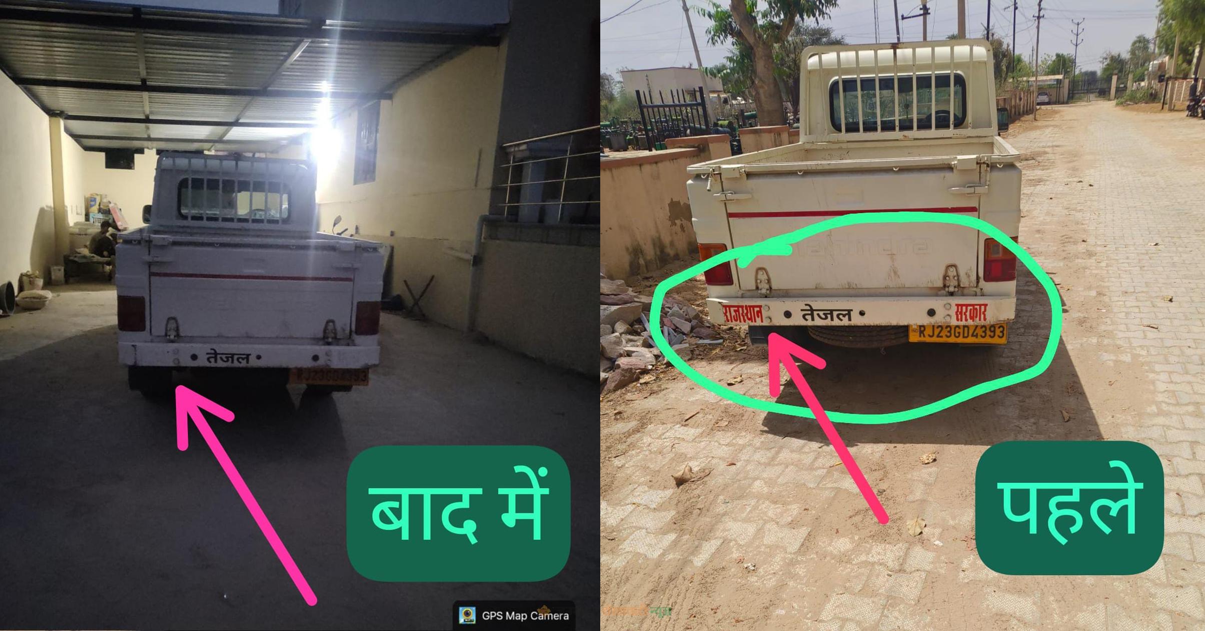 खबर का असर : बिजली विभाग के एफ आर टी वाहनों पर ‘राजस्थान सरकार’ लिखी अवैध नेम प्लेट हटाई