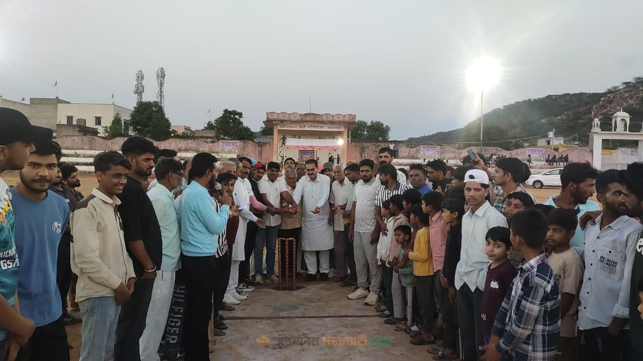 खेतड़ी : खेतड़ी उपखंड के उपखंड क्षेत्र के जसरापुर गांव के शहीद भीमसिंह शौर्य चक्र राजकीय उच्च माध्यमिक विद्यालय स्थित पंडित सच्चिदानंद जोशी स्टेडियम में श्री मेटालिक्स लिमिटेड के सौजन्य से जसरापुर प्रीमियर लीग रात्रिकालीन क्रिकेट प्रतियोगिता (प्रथम सीजन) का भव्य शुभारंभ हुआ। कार्यक्रम की अध्यक्षता विवेक शर्मा ने की, जबकि मुख्य अतिथि शिवकुमार सुरेलिया ने फीता काटकर एवं गेंद खेलकर प्रतियोगिता का विधिवत उद्घाटन किया। इस अवसर पर विशिष्ट अतिथि के रूप में विकास शर्मा, आशुतोष शर्मा, झंडूराम गुर्जर, छगनलाल शर्मा एवं रमाकांत पुजारी मौजूद रहे।