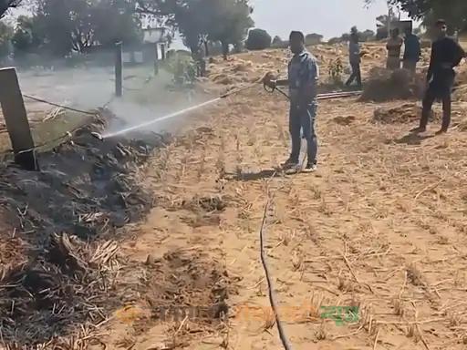 चिड़ावा के किठाना में गेहूं की फसल में लगाई आग:रास्ते को लेकर हुआ विवाद, पटवारी और पुलिस ने खुलवाया