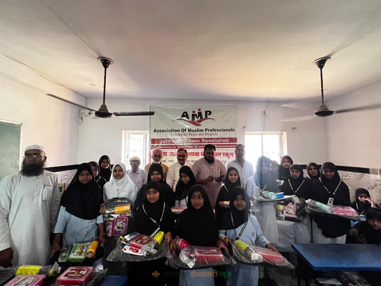जयपुर : शास्त्री नगर स्थित जामिया तय्यबा मेमोरियल स्कूल में शिक्षा और सामाजिक सरोकार की मिसाल पेश करते हुए करियर गाइडेंस सेमिनार एवं स्कूल किट वितरण समारोह आयोजित किया गया। कार्यक्रम का आयोजन Association of Muslim Professionals (एएमपी) की ओर से किया गया।