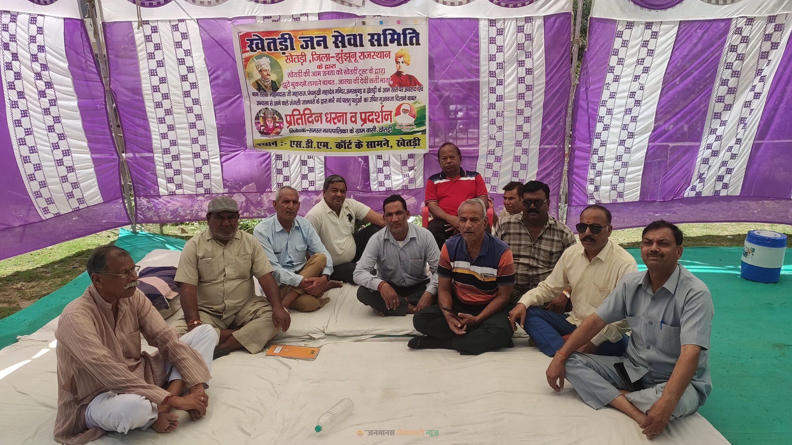 खेतड़ी में जन सेवा समिति का धरना 23वें दिन भी जारी: 17 अप्रैल को खेतड़ी बंद का आह्वान