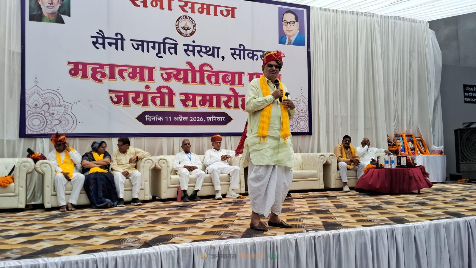 सीकर के पिपराली चौराहे पर महात्मा ज्योतिबा फुले जयंती मनाई गई। कार्यक्रम में सैनी समाज के 6 संगठन शामिल हुए। मुख्य अतिथि UDH राज्यमंत्री ने कहा- महापुरुष किसी एक समाज की बपौती नहीं होते, वो पूरे समाज के होते हैं। उन्हें एक समाज से जोड़कर देखना गलत है।
