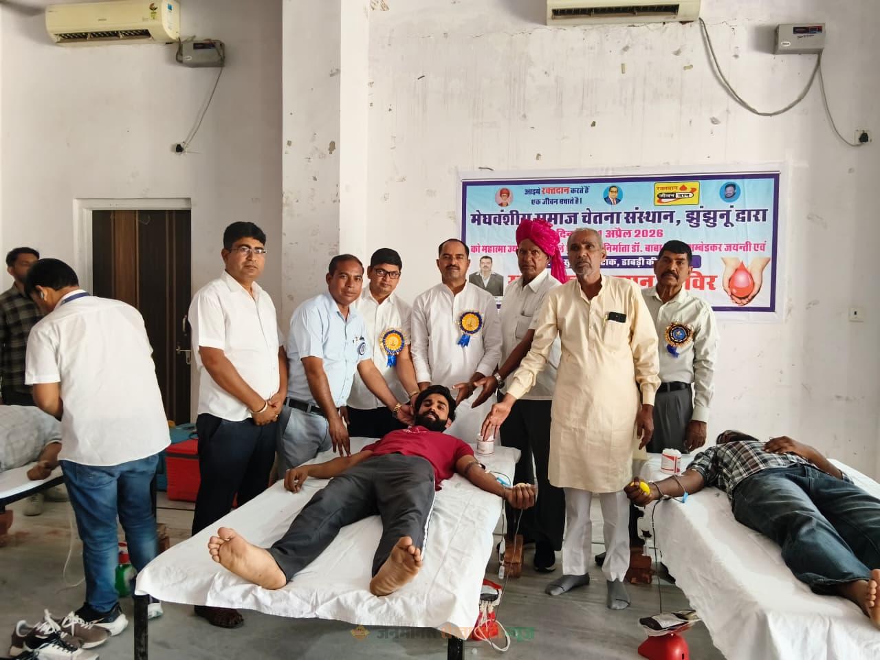 झुंझुनूं : मेघवंशीय समाज चेतना संस्थान के तत्वावधान में अंबेडकर भवन में महात्मा ज्योतिबा फुले व डॉ. भीमराव अंबेडकर की जयंती तथा स्व. सुरेंद्र सिंह टांक की स्मृति में रक्तदान शिविर आयोजित किया गया। शिविर का उद्घाटन भाजपा नेता राजेश दहिया ने फीता काटकर किया। इस दौरान उन्होंने फुले, अंबेडकर सहित अन्य महान विभूतियों की प्रतिमाओं पर पुष्पांजलि अर्पित की।