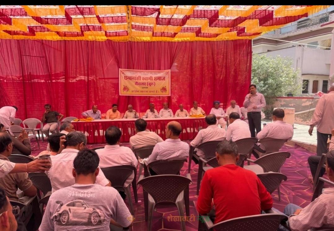 बीदासर : स्थानीय श्री गांधी चौक के पास नगर में स्थित ठाकुरजी मंदिर में ‘धन्नावंशी स्वामी समाज बीदासर’ की महत्वपूर्ण बैठक आयोजित हुई, जिसमें समाज के विकास, संगठन की मजबूती और शैक्षणिक उत्थान को लेकर कई अहम निर्णय सर्वसम्मति से पारित किए गए। बैठक में समाज को संगठित और प्रभावी दिशा देने के उद्देश्य से नई कार्यकारिणी का गठन किया गया। सर्वसम्मति से सुरजादास (कड़वा) को संरक्षक, गोपालदास स्वामी (चितोड़िया) को अध्यक्ष, पदमदास स्वामी (कड़वा) को उपाध्यक्ष, राजेन्द्र कुमार स्वामी (मुंड) को कोषाध्यक्ष तथा रामप्रताप स्वामी (कड़वा) को सचिव चुना गया।