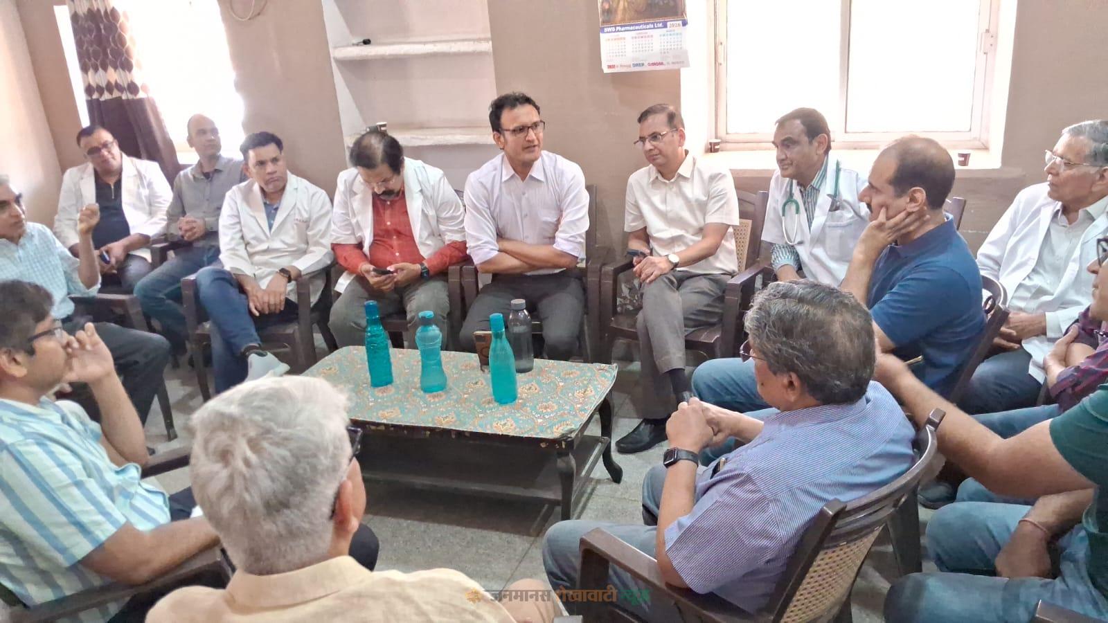 जयपुर में प्राइवेट हॉस्पिटल के डॉ. सोहन देव बंसल की गिरफ्तारी के विरोध में बंद रखा गया है। डॉ. सोहन देव बंसल की गिरफ्तारी गैरकानूनी है, जिस तरीके से उनको गिरफ्तार किया गया वह अनुचित है। आज सीकर के सभी डॉक्टर्स की एक मीटिंग आयोजित की गई है। मीटिंग में निर्णय लिया गया कि सरकार डॉ. सोहन देव बंसल को तुरंत रिहा करें नहीं तो सभी प्राइवेट अस्पताल अनिश्चितकाल के लिए बंद कर दिए जाएंगे।