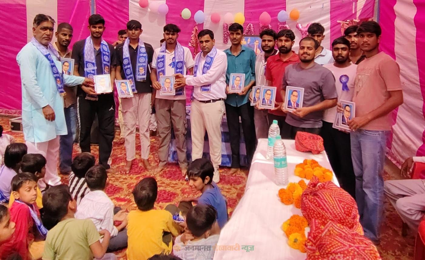 बुहाना : बाबासाहेब डॉ. भीमराव अम्बेडकर की 135वीं जयंती के अवसर पर उदामाण्डी में एक भव्य समारोह का आयोजन किया। इस दौरान समाज के शिक्षा एवं सामाजिक क्षेत्र में अग्रणी मेधावी बच्चों को सम्मानित किया गया। मुख्य अतिथि के रूप में समाजसेवी राशन डीलर भूपेंद्र सिंह उपस्थित रहे।
