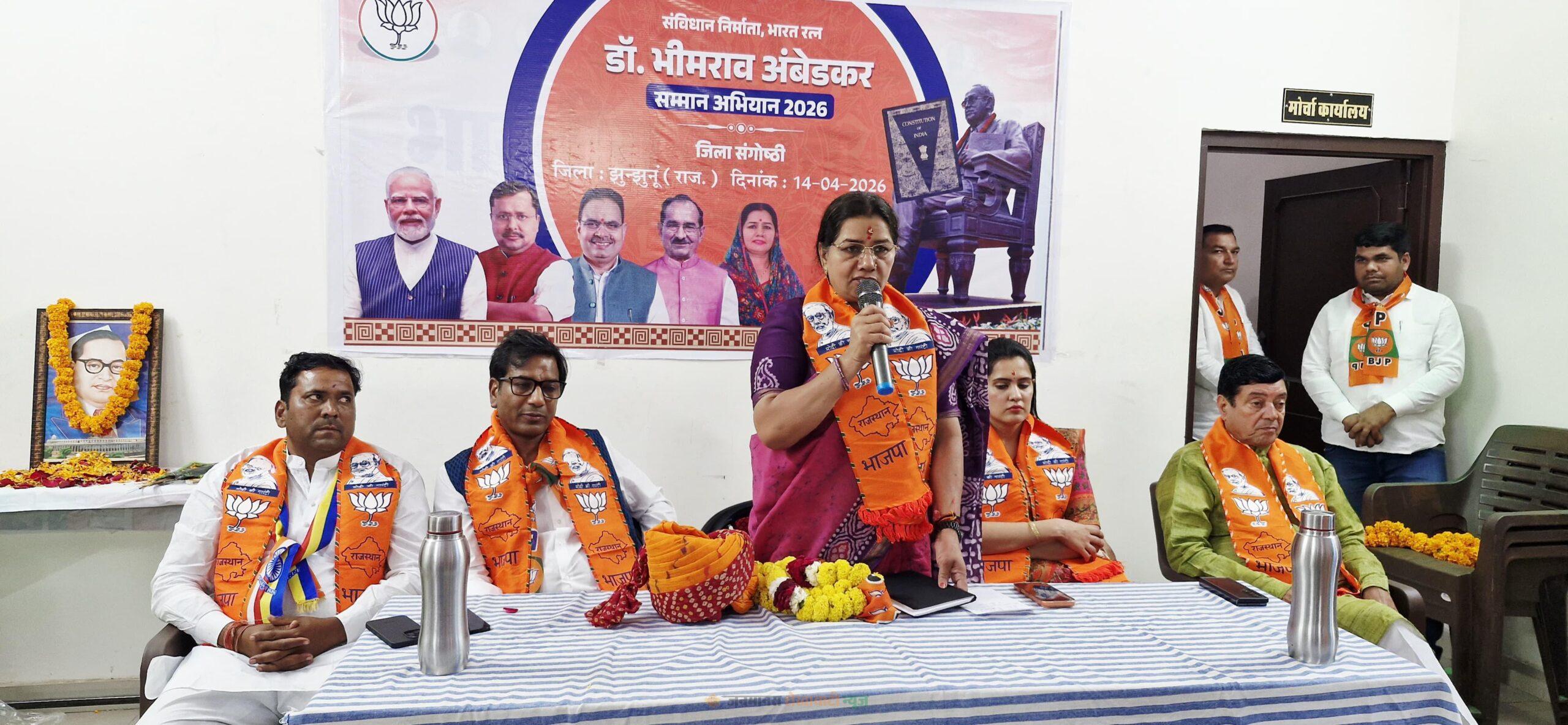 झुंझुनूं : भारत रत्न डॉ. भीमराव अंबेडकर की जयंती के अवसर पर रीको स्थित भाजपा जिला कार्यालय में सम्मान अभियान 2026 के तहत सचित्र प्रदर्शनी एवं संगोष्ठी का आयोजन किया गया। कार्यक्रम की अध्यक्षता भाजपा जिलाध्यक्ष हर्षिनी कुलहरी ने की।