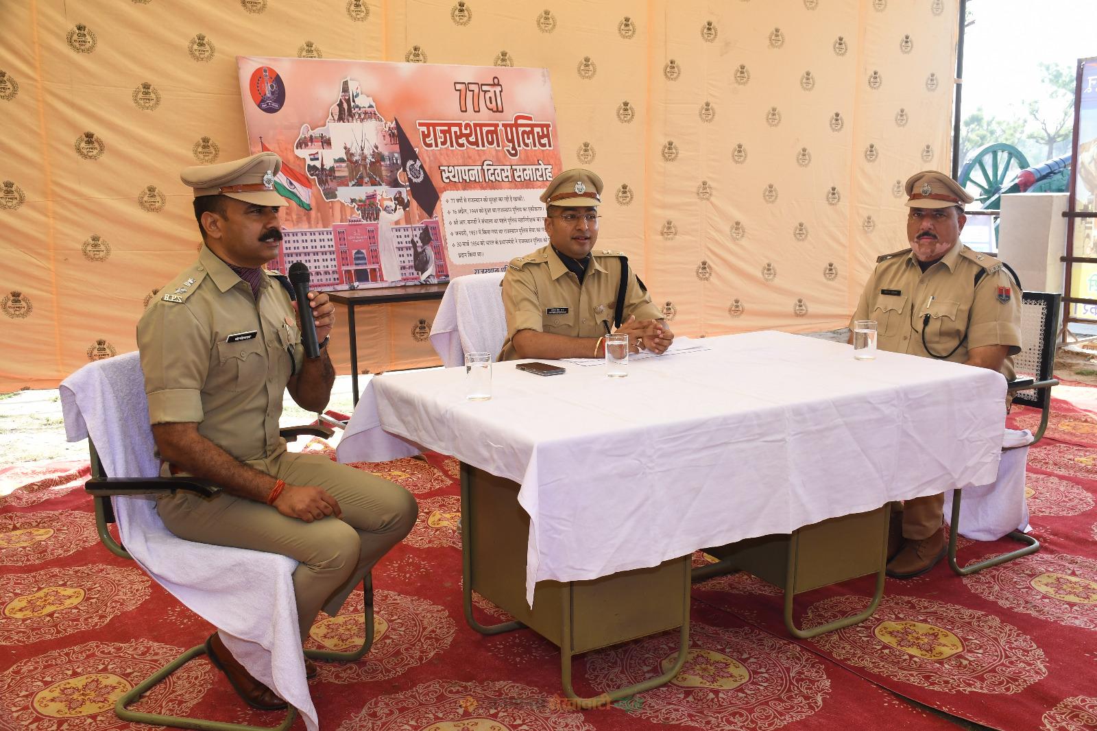 राजस्थान पुलिस के 77वें स्थापना दिवस पर गुरुवार को पुलिस लाइन के परेड ग्राउंड में परेड के साथ कार्यक्रम हुआ, जहां एसपी कावेंद्र सिंह सागर ने सलामी ली। इस दौरान उत्कृष्ट कार्य करने वाले पुलिसकर्मियों और क्विज प्रतियोगिता के विजेता स्टूडेंट्स को सम्मानित किया गया। कार्यक्रम में पुलिस और पब्लिक के बीच जुड़ाव बढ़ाने पर जोर दिया गया।