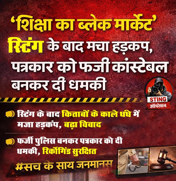 कमीशन की मलाई खाने वाले इन तथाकथित “शिक्षा के ठेकेदारों” की बेशर्मी अब अपने चरम पर है। स्टिंग से बौखलाए ये लोग अब सीधे धमकी पर उतर आए हैं, वो भी “फर्जी पुलिसवाले” बनकर! पता लगा रहे हैं कि स्टिंग करने वाले पत्रकारों ने कब कब कहां क्या किया था एक तरफ राजस्थान पुलिस का ध्येय वाक्य “आमजन में विश्वास” की बात करता है… और दूसरी तरफ, कुछ कमीशनखोर उसी खाकी की आड़ लेकर पत्रकारों को डराने की कोशिश कर रहे हैं।