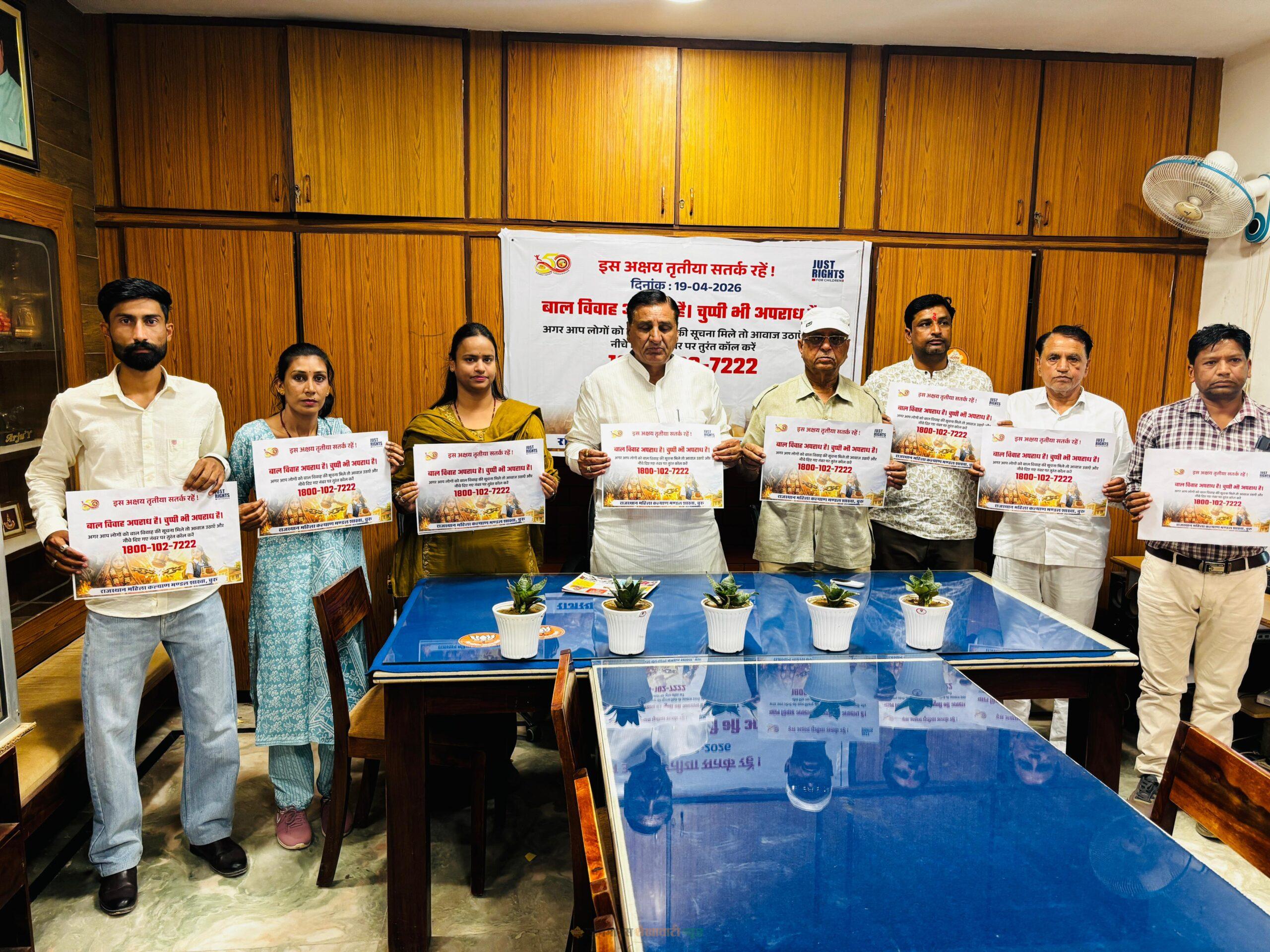 विधायक सहारण ने बाल विवाह रोकथाम पोस्टर का विमोचन किया:चूरू में बाल विवाह मुक्त भारत अभियान की शुरुआत
