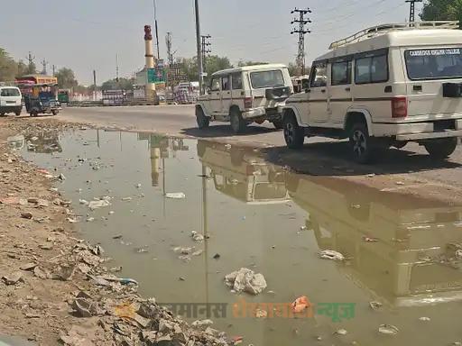 सरदारशहर : सरदारशहर में अशोक स्तंभ सर्किल के पास आपणी योजना की पाइपलाइन में रिसाव के कारण जयपुर-हनुमानगढ़ मेगा हाईवे पर गंदा पानी जमा हो गया है। इससे प्रतिदिन गुजरने वाले वाहन चालकों और स्थानीय दुकानदारों को आवागमन में भारी परेशानी का सामना करना पड़ रहा है।