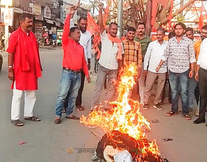 झुंझुनूं में विहिप का प्रदर्शन, धर्मांतरण व गौ हत्या के विरोध में पुतला दहन