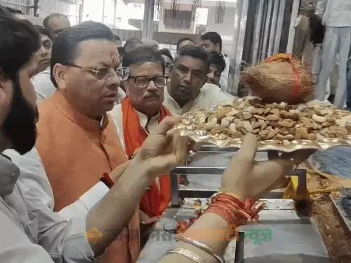 उत्तराखंड के CM पुष्करसिंह धामी पहुंचे खाटूश्यामजी:चौखट पर स्वास्तिक बनाकर सुख-समृद्धि की कामना की