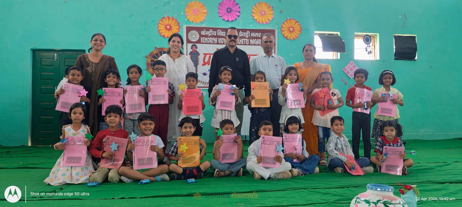 खेतड़ी नगर : केंद्रीय विद्यालय स्कूल में प्रथम कक्षा के बच्चों का प्रवेश उत्सव मनाया गया। कार्यक्रम की अध्यक्षता उम्मेद अली ने की।कार्यक्रम का शुभारंभ मां सरस्वती की प्रतिमा के समक्ष दीप प्रज्वलित कर किया। इस अवसर पर कक्षा प्रथम के नव प्रवेशित बच्चों का तिलक लगाकर एवं स्वागत गान के द्वारा स्वागत किया गया। संगीत शिक्षिका डॉ डॉली भारती के निर्देशन में विद्यालय के बच्चों ने रंगा रंग सांस्कृतिक कार्यक्रमों की प्रस्तुति दी।