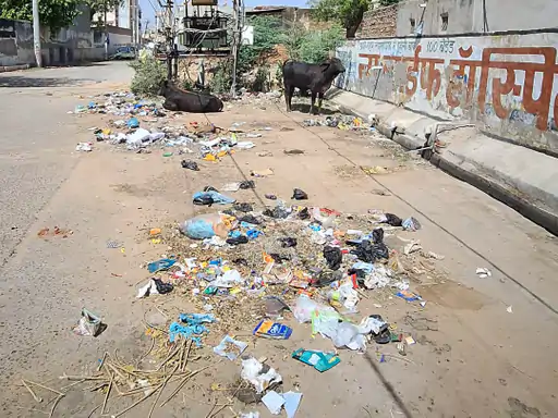 दिनभर कचरा सड़क पर फैला रहता है, जिसे आवारा पशु मुंह मारकर और अधिक फैलाते हैं। पास ही बाबा भूतनाथ मंदिर होने के कारण यहां से रोजाना श्रद्धालुओं का आवागमन रहता है, वहीं स्कूल के बच्चे और आम नागरिक भी इसी रास्ते से गुजरते हैं। कचरे की दुर्गंध के चलते लोगों को भारी परेशानी का सामना करना पड़ रहा है।