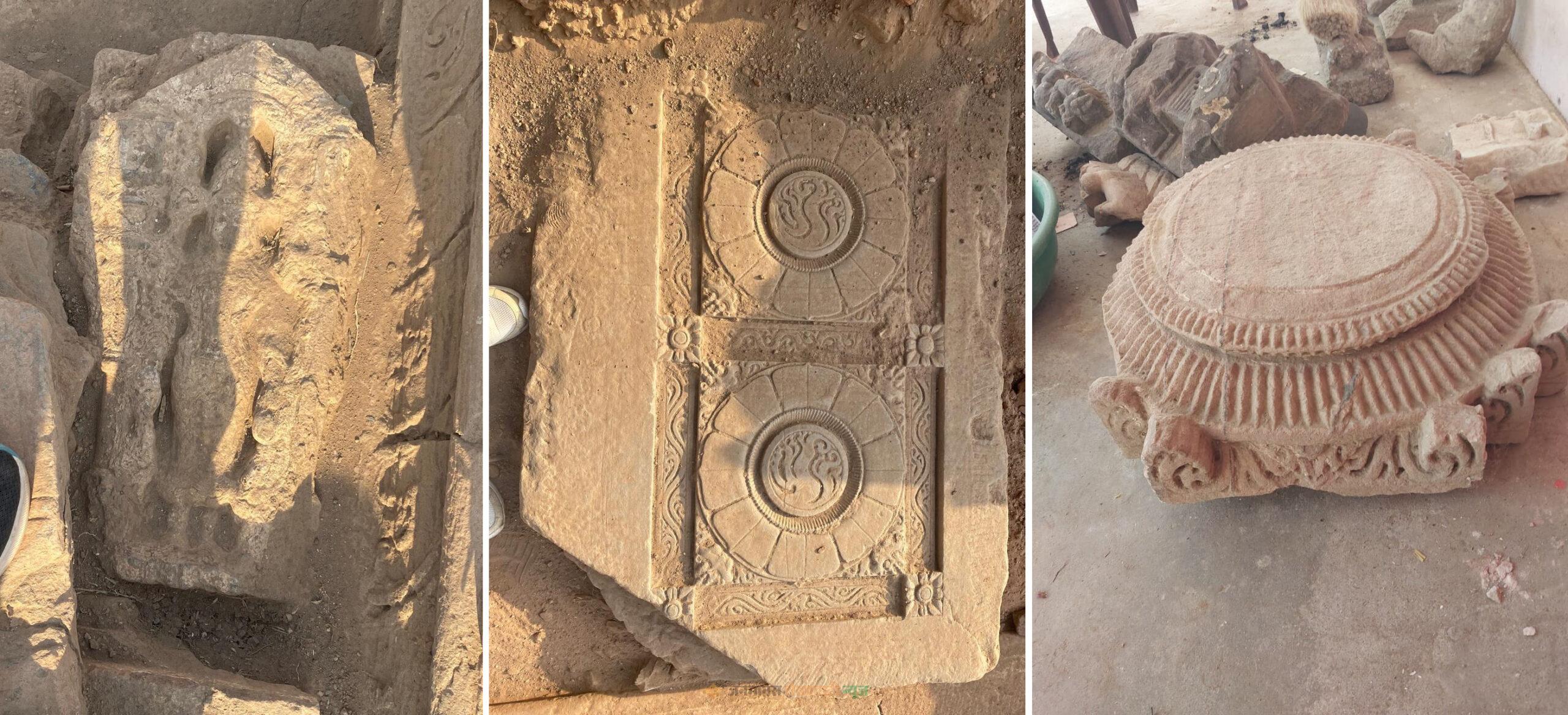 खुदाई में प्राचीन दीवारों के अवशेष, कुषाण काल की ईंटें (जिन पर उंगलियों के निशान मौजूद हैं), टेराकोटा के टुकड़े तथा अन्य पुरावशेष मिले हैं, जो उस समय की उन्नत निर्माण कला और सामाजिक-आर्थिक जीवन को दर्शाते हैं।