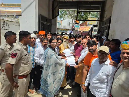 श्रीमाधोपुर : श्रीमाधोपुर में सोमवार को गौवंश संरक्षण और गाय को ‘राष्ट्रमाता’ का दर्जा दिलाने की मांग को लेकर ‘गो सम्मान आह्वान अभियान’ के तहत गौसेवकों ने उपखंड कार्यालय पर प्रदर्शन किया। अधिकारियों की अनुपलब्धता से नाराज प्रदर्शनकारियों ने मुख्य सड़क पर जाम लगा दिया, जिससे करीब आधे घंटे तक यातायात बाधित रहा।