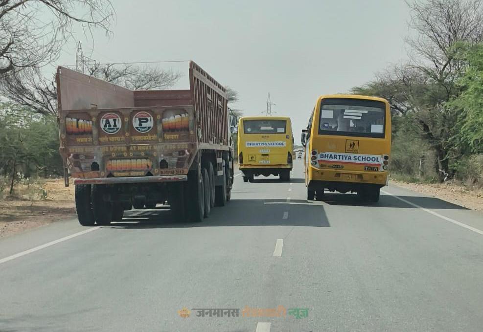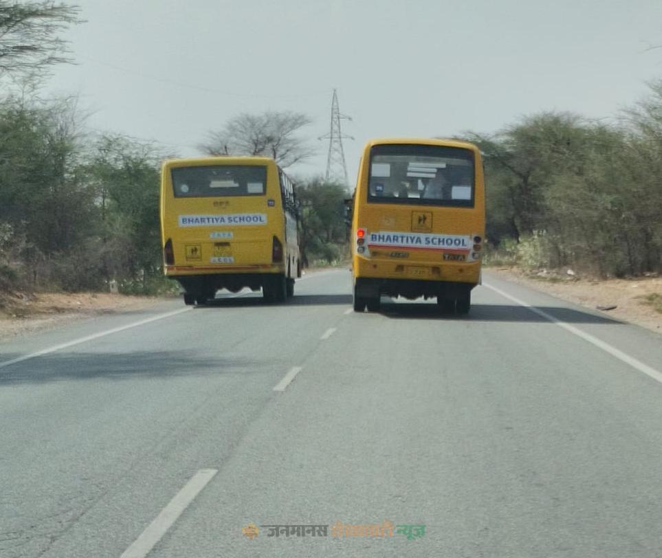 ताजा मामला फतेहपुर से लक्ष्मणगढ़ के बीच हाईवे का है, जहां ‘भारतीय स्कूल’ की एक ही स्कूल की दो बसें एक-दूसरे से आगे निकलने की होड़ में इस तरह दौड़ती नजर आईं मानो कोई रेसिंग ट्रैक हो। हैरानी की बात यह रही कि जिस वक्त ये बसें खतरनाक ओवरटेक कर रही थीं, उसी समय सामने से एक वाहन भी आ रहा था। इसके बावजूद ड्राइवरों ने ‘सुसाइड ओवरटेक’ करने में जरा भी हिचक नहीं दिखाई। यह सिर्फ लापरवाही नहीं, बल्कि मासूम बच्चों की जान के साथ खुला खिलवाड़ है।