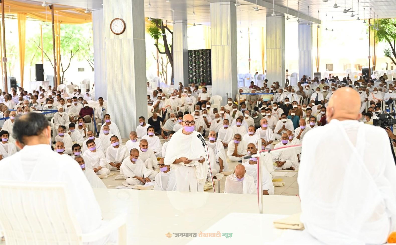 लाडनूं : जैन विश्व भारती परिसर में योगक्षेम वर्ष सम्पन्न कर रहे जैन श्वेताम्बर तेरापंथ धर्मसंघ के वर्तमान अधिशास्ता, भगवान महावीर के प्रतिनिधि, अहिंसा यात्रा प्रणेता, शांतिदूत आचार्य महाश्रमण की सन्निधि में प्रतिदिन हजारों की संख्या में श्रद्धालु उमड़ रहे हैं। गत दो से दिन तीनों में मानों सूर्योदय के पहले से ही श्रद्धालुओं को जो हुजूम उमड़ता, वह मानों देर रात तक उमड़ा हुआ था। अपने आराध्य के जन्मोत्सव व पट्टोत्सव के प्रसंग में हजारों-हजारों की संख्या में श्रद्धालुओं ने दर्शन, सेवा व उपासना का लाभ प्राप्त किया है। नित्य की भांति सोमवार को सुधर्मा सभा में उपस्थित चतुर्विध धर्मसंघ के मध्य मंच पर विराजमान आचार्य महाश्रमण ने आज के मुख्य प्रवचन कार्यक्रम का शुभारम्भ किया। साध्वीवृंद ने प्रज्ञा गीत का संगान किया।