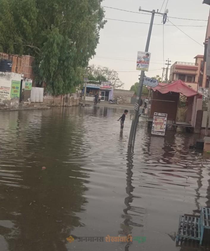 छापर में लाखों खर्च के बाद भी जलभराव से राहत नहीं, पहली बारिश में खुली ड्रेनेज की पोल