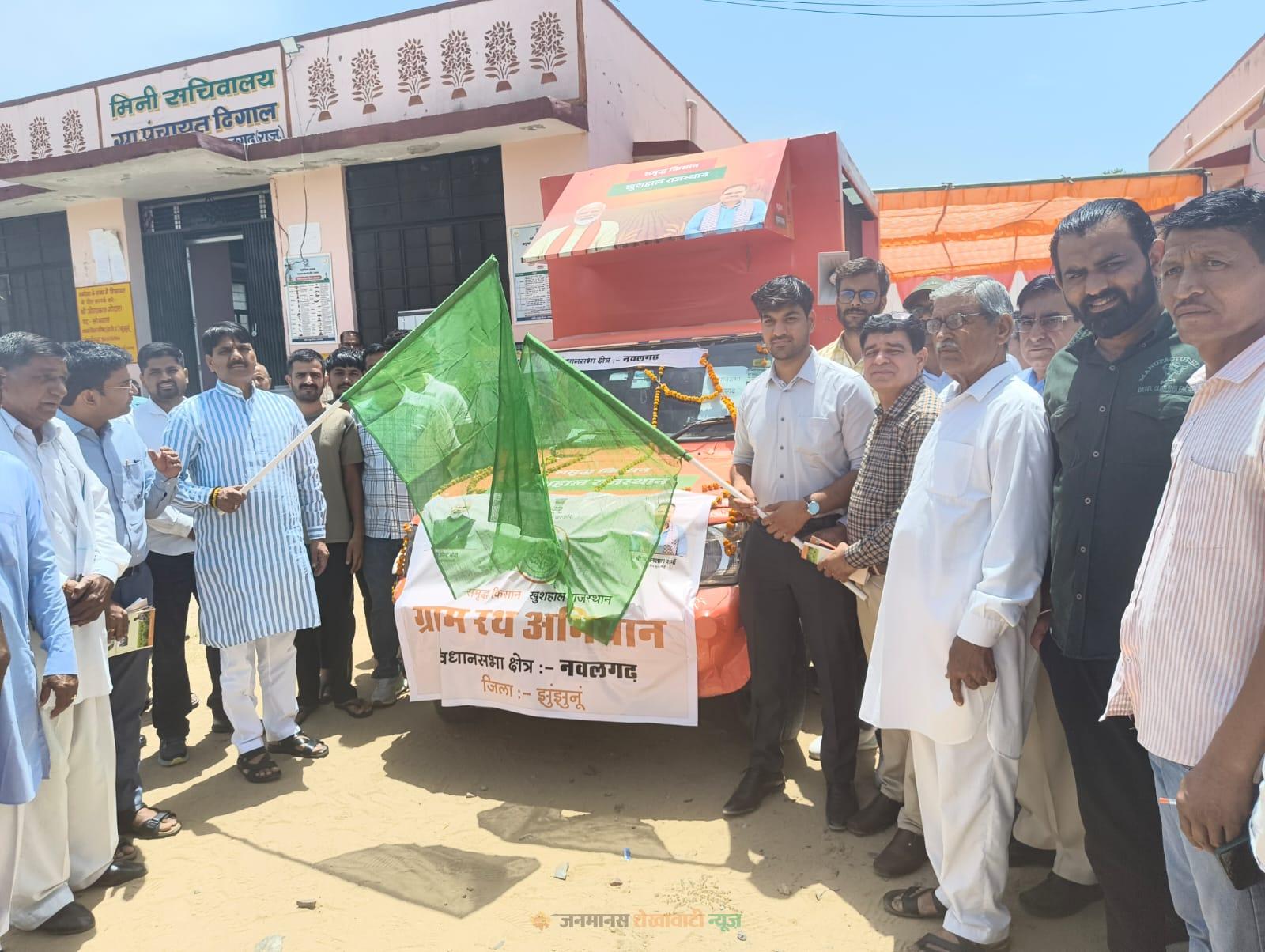 नवलगढ़ : नवलगढ़ विधानसभा क्षेत्र में ग्राम रथ अभियान की शुरुआत ग्राम पंचायत ढिगाल से हुई। इस अवसर पर विधायक विक्रम सिंह जाखल ने संबोधित करते हुए राज्य सरकार की उपलब्धियों पर प्रकाश डाला। उन्होंने बताया कि पिछले दो वर्षों में नवलगढ़ विधानसभा क्षेत्र में 133 केवी के दो जीएसएस स्वीकृत हुए हैं। साथ ही बिजली व्यवस्था में सुधार पर संतोष जताते हुए मुख्यमंत्री भजनलाल शर्मा का आभार व्यक्त किया। विधायक जाखल ने क्षेत्र में हुए विभिन्न विकास कार्यों का भी विस्तृत उल्लेख किया।