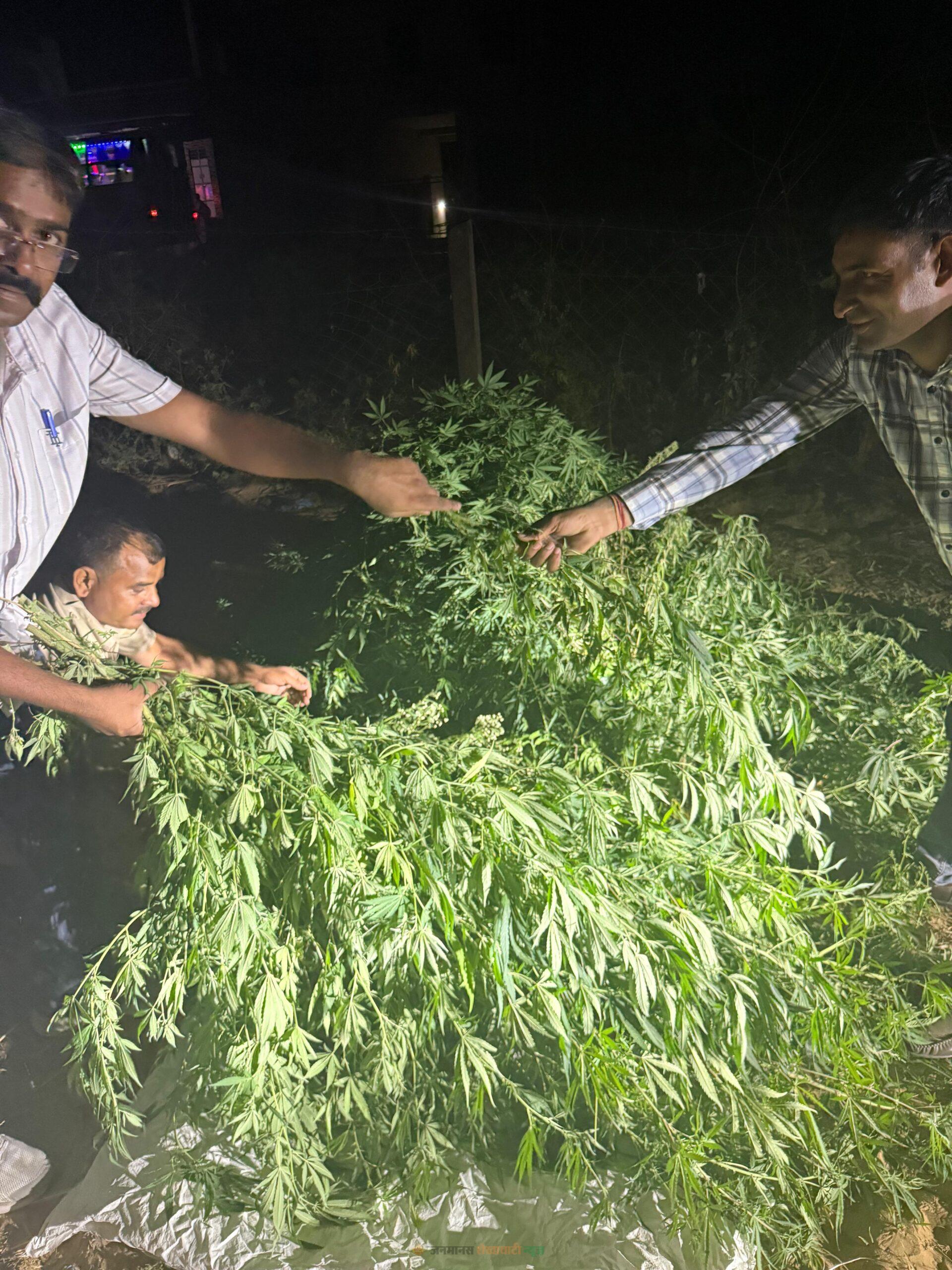 थाना प्रभारी राकेश कुमार मीणा के अनुसार ह्यूमन इंटेलिजेंस से सूचना मिली थी कि गांव में खेती की जमीन पर गेहूं की फसल की आड़ में गांजा उगाया जा रहा है। सूचना के आधार पर पुलिस टीम ने मौके पर पहुंचकर कार्रवाई की, जहां बड़ी संख्या में गांजे के पौधे मिले।