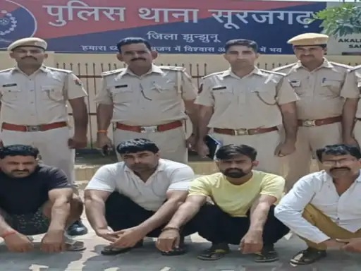 सूरजगढ़ : झुंझुनूं जिला स्पेशल टीम व सूरजगढ़ पुलिस ने अवैध शराब के खिलाफ कार्रवाई करते हुए चार जनों को गिरफ्तार किया है। आरोपियों के कब्जे से 150 कार्टन (7200 पेट्रा पैक) व 1 लाख 3 हजार 350 रुपए जब्त किए हैं। साथ ही एक लोडिंग टेम्पो व एस्कॉर्ट कर रही कार को जब्त किया है।