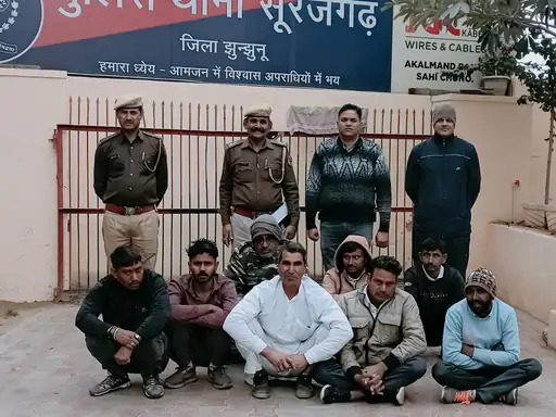 थानाधिकारी भजनाराम ने बताया कि आरोपी तोली सेही निवासी सुरेश पुत्र रामस्वरूप, सुनील कुमार पुत्र तनसुखराम, कुलोठ कलां के सुखीबर उर्फ पप्पू पुत्र हरफूल, जीणी निवासी विनोद पुत्र जयचंद, वार्ड नं. 2 सूरजगढ निवासी प्रमोद कुमार पुत्र भीमसिंह, काकोड़ा के रामपाल उर्फ शास्त्री पुत्र अतर सिंह को दबिश देकर गिरफ्तार किया।