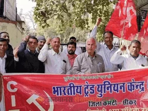 सीटू के जिला महामंत्री बृजसुन्दर जांगिड़ ने बताया कि देश व राजस्थान प्रदेश में मजदूरों पर भारी संकट है। रोजाना नए-नए कानून बनाने के कारण मजदूर वर्ग व आम जनता का शोषण हो रहा है और अत्याचार बढ़ गया है। वहीं आम मजदूर की नौकरी खतरे में है तथा आम नागरिक को अपना घर चलना मुश्किल हो गया है। देशभर के लोग आज केंद्र सरकार की नीतियों का विरोध कर रहे हैं।