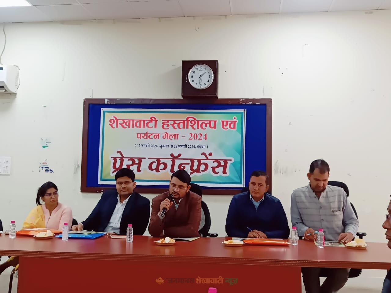झुंझुनूं : शेखावाटी हस्तशिल्प एवं पर्यटन मेले का आयोजन इस वर्ष 19 जनवरी से 28 जनवरी तक ग्रामीण हाट आबूसर में किया जाएगा। मेले की तैयारी को लेकर मंगलवार को सूचना केंद्र सभागार में प्रेस कॉन्फ्रेंस का आयोजन किया गया । प्रेस कॉन्फ्रेंस को संबोधित करते हुए जिला उद्योग एवं वाणिज्य केंद्र के महाप्रबंधक अभिषेक चोबदार ने बताया कि मेले में विभिन्न दिवसों में परम्परागत ग्रामीण खेलकूद एवं आकर्षक प्रतियोगिताओं के साथ -साथ सांस्कृतिक कार्यक्रम भी आयोजित होंगे।