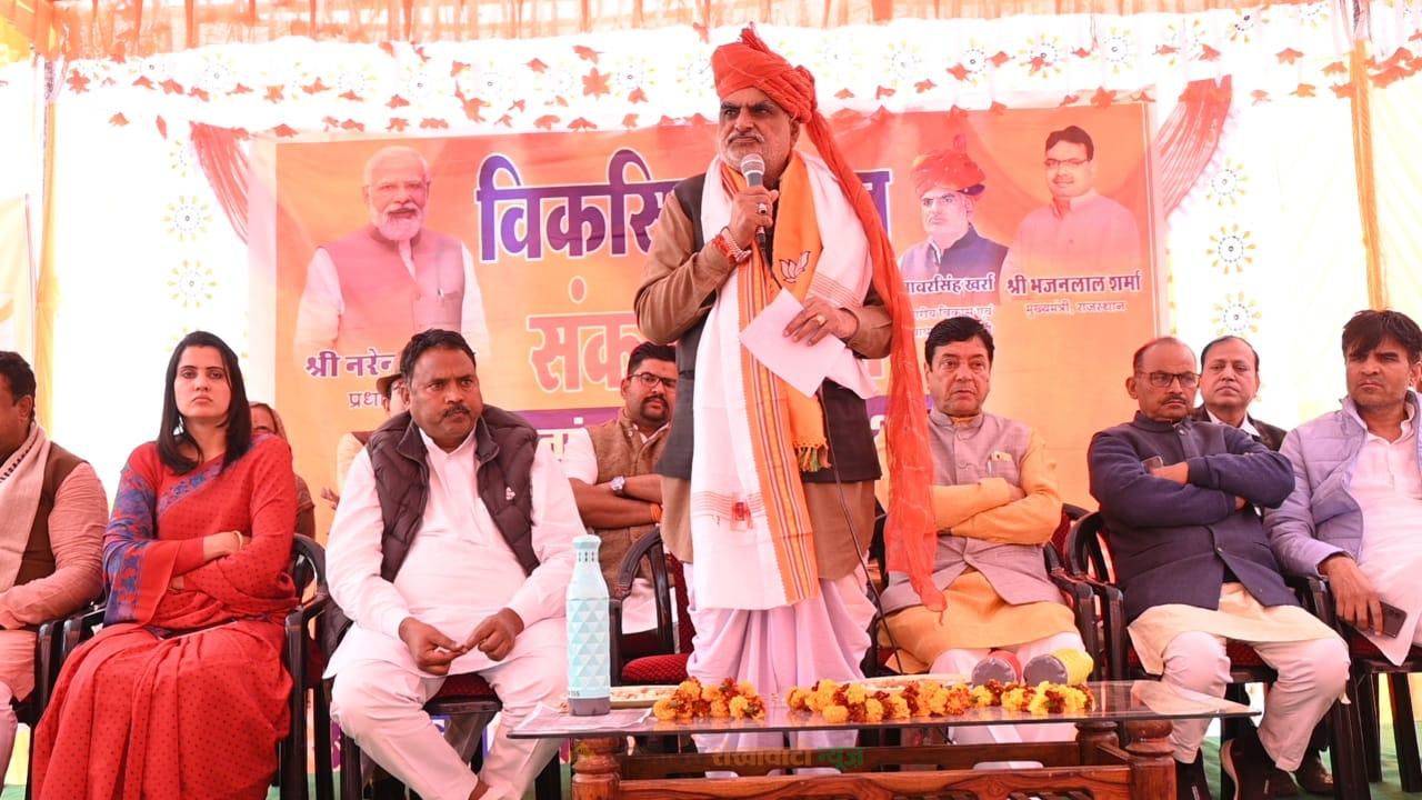 कार्यक्रम में सांसद नरेंद्र खीचड़ ने विकसित भारत के संकल्प की शपथ दिलवाई एवं कहा कि मोदी की गारंटी का रथ आपके द्वारा आया है जिससे आमजन को सीधा फायदा मिल रहा है । उन्होंने कहा कि सरकार नए उज्जवला गैस कनेक्शन वितरित कर रही है एवं पहले के लाभार्थियों को 450 रूपये में गैस सिलेंडर उपलब्ध करवा रही है।