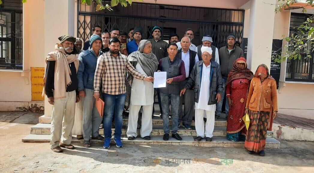 बाकरा सरपंच को नहर का प्रस्ताव बनवाने के लिए दिया ज्ञापन ।