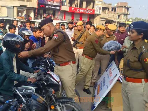 एसपी अनिल बेनीवाल ने कहा कि आज निशुल्क हेलमेट देकर दुपहिया वाहन चालकों को हिदायत दी गई है। कल से शहर में कोतवाली पुलिस और ट्रैफिक पुलिस की और से नियमों को फॉलो नही करने वाले दुपहिया वाहन के भारी मात्रा में चालान किये जायेंगे।
