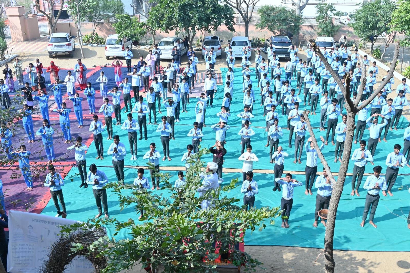 सेठ दुर्गादत्त जटिया स्कूल बिसाऊ में सूर्य सप्तमी के उपलक्ष पर किया सामूहिक सूर्य नमस्कार